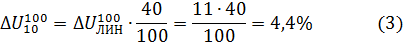 | Потери ∆U10 в линии напряжением 10 кВ | -4,4 | -1,1 |
