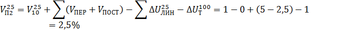 2) Определяем отклонение у потребителя при 25 % нагрузке (для БТП), %: