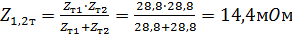 Определяем общее сопротивление двух трансформаторов:
