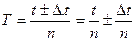 , откуда видно, что ошибка, допущенная при измерении, уменьшается в n раз. Чем большее число периодов мы отсчитаем, тем точнее определится продолжительность одного.