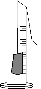 1. В мензурку наливаем воду до определенного уровня. Опускаем цилиндр в мензурку, при этом уровень воды поднимается на N делений. Цена деления мензурки