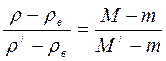 Пусть масса пикнометра будет – m, масса пикнометра, наполненного исследуемой жидкостью – М, масса пикнометра, наполненного дистиллированной водой – М `, тогда масса исследуемой жидкости будет (М – m), а масса дистиллированной воды – (М `– m). Плотность жидкости, вследствие равенства объемов, определится по формуле:
