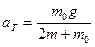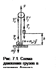 Для случая mб<<m имеет место равенство Т1= Т2= Т. В этом случае решение системы уравнений (7.1), (7.2) дает значение ускорения а т, с которым движутся грузы m и m+m0: