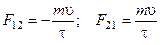 Здесь F12 и F22 среднее за время удара значение сил взаимодействия между шарами.