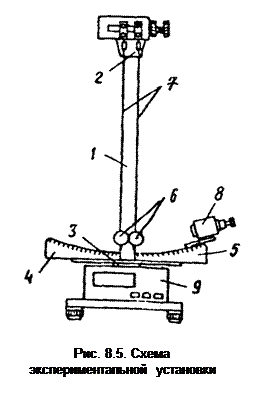 Указания к решению. Скорость шара в момент начала соударения определяется из рис. 8.1. Задача решается с использованием закона сохранения энергии. Пусть в первый момент соприкосновения шаров механическая энергия