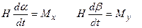где Мх и Му составляющие моменты внешних сил, Н - кинетический момент гироскопа (вращающий момент ротора двигателя с диском),