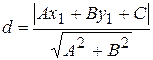 до прямой, заданной общим уравнением: Ах+Ву+С=0, находится по формуле: