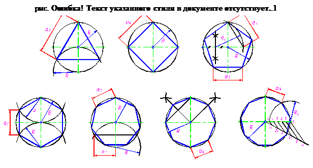 Деление окружности на равные части и построение правильных вписанных многоугольников выполняют графически.