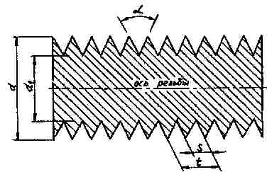 - профиль резьбы - контур сечения резьбы в плоскости, проходящей через ось резьбы;