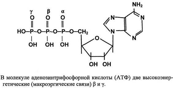 К клеточным макроэргическим соединениям относят фосфоенолпируват, 1,3-дифосфоглицерат, которые образуются в гликолизе (в процессе распада глюкозы до пирувата). К ним относят также сукцинил-КоА (образуется в цикле трикарбоновых кислот, переносит фосфатную группу на ГДФ), карбамоилфосфат (образуется в первой реакции цикла мочевины) и креатинфосфат. Эти молекулы обладают большим потенциалом переноса фосфатной группы на АДФ с образованием АТФ, потому что энергия, выделяемая при распаде этих макроэргических молекул более высокая, чем требуется для синтеза АТФ из АДФ. По отношению к АДФ, перечисленные макроэргические молекулы доноры энергии. В свою очередь АТФ - источник энергии для важных метаболических путей, в которые входят глюкоза, фруктоза и многие другие молекулы. Получая фосфатную группу от АТФ, эти молекулы увеличивают уровень своей свободной энергии (AG), что обеспечивает течение ряда ферментативных реакций и клеточных процессов.