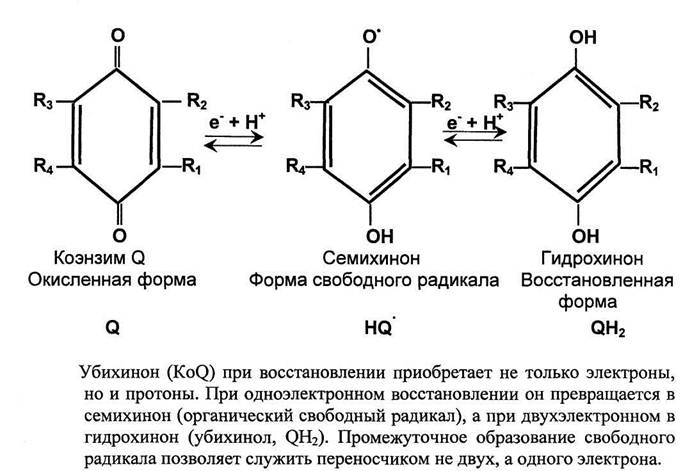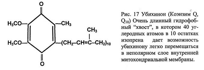 Единственный небелковый переносчик электронов - убихинон (коэнзим Q), названный так, потому, что с одной стороны он хинон, а с другой встречается повсюду (ubiquitous - вездесущий). Железо-серные центры отдают электроны уби-хинону, который включен в состав комплекса III.
