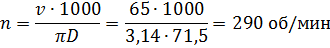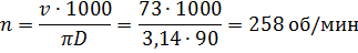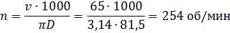 4. По установленной скорости резания определяется число оборотов шпинделя; оно равно: