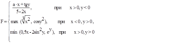 Вычислить значение функции F. Предусмотреть вывод сообщения о том, по какой ветви происходило вычисление.