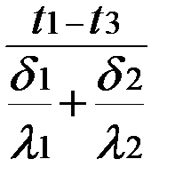 Удельный тепловой поток q через два слоя стенки определяется по следующей формуле: