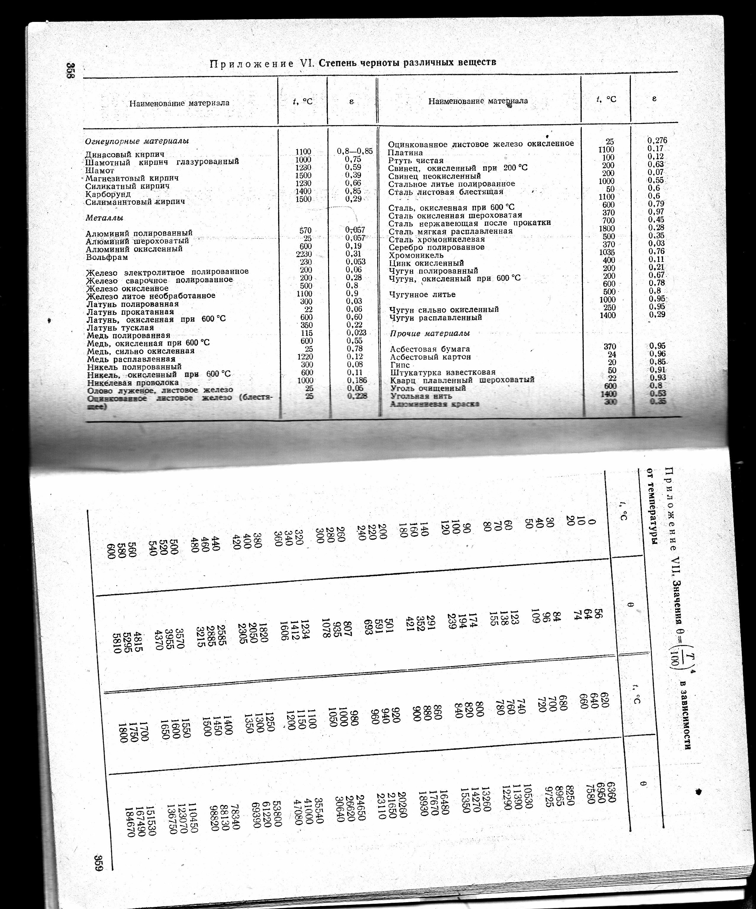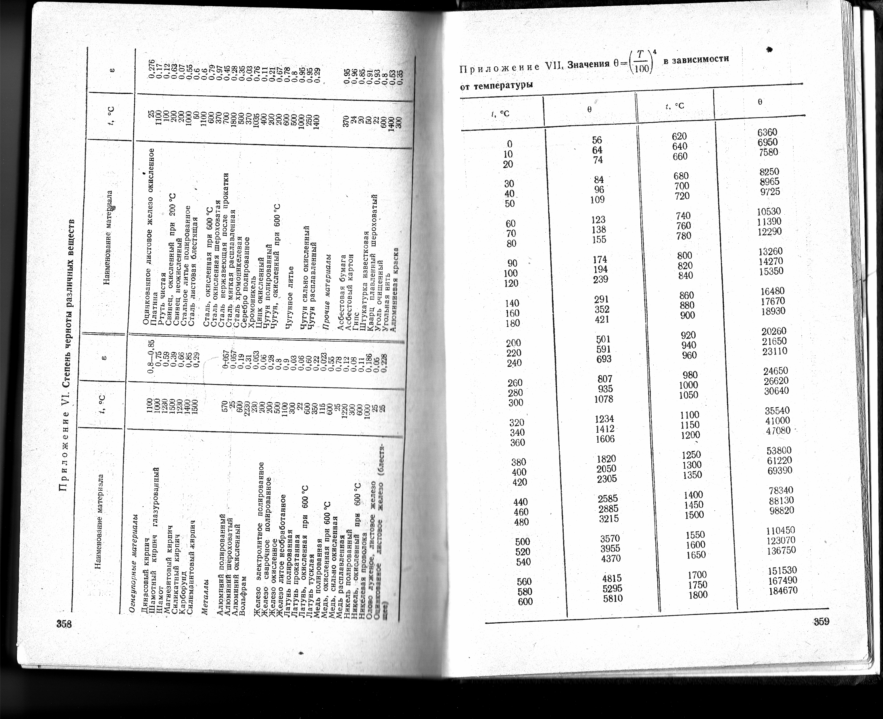 Таблица А7 – Значения Θ=(Т4/100) в зависимости от температуры