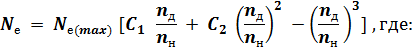 Например, формула кубического трехчлена [2; 4].для внешней скоростной характеристики дизеля имеет вид: