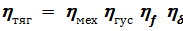 Составляющие тягового к.п.д. рассчитываются следующим образом: