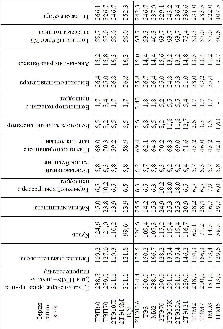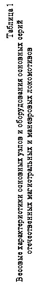 В таблице 1 приведены весовые характеристики основных узлов и оборудования основных серий отечественных магистральных и маневровых локомотивов.