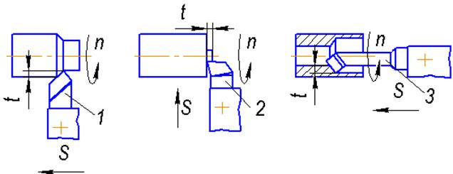 1 – проходной упорный резец; 2 – подрезной резец; 3 – расточной резец