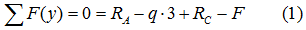 1. Балка не перемещается по вертикали, т.е. сумма проекций всех сил на ось y равна нулю: