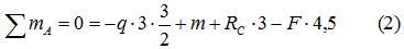 2. Тот факт, что балка не вращается, говорит о том, что сумма моментов относительно любой ее точки тоже равна нулю, т.е.: