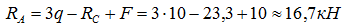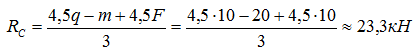 Здесь сумму моментов лучше записывать относительно точки расположенной на опоре (например, A), т.к. в этом случае соответствующая реакция RA в уравнении не участвует.