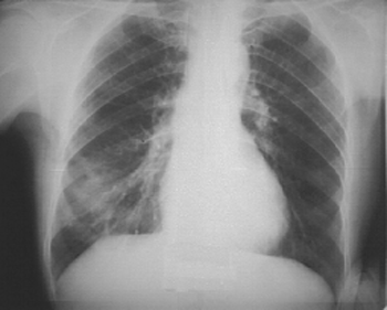 Общий осмотр. Частота дыхания зависит от тяжести процесса и может варьировать в широких пределах. При крупозной пневмонии половина грудной клетки, соответствующая воспалительному очагу, отстает в акте дыхания. При очаговой пневмонии движения грудной клетки симметричны.