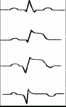 14. ВО ВРЕМЯ ПРИСТУПА СТЕНОКАРДИИ НА ЭКГ РЕГИСТРИРУЕТСЯ