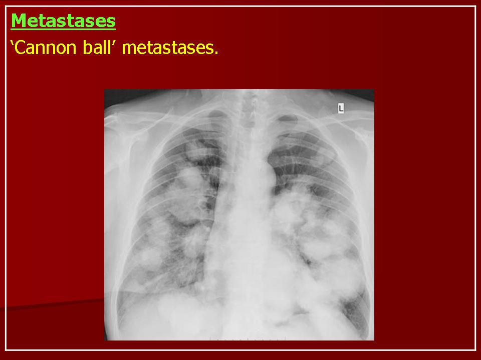 Рис. 29. Инфильтративные тени по всем полям легких с четкими контурами (метастазы опухоли).