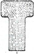 На участках макрошлифа в местах расположения пор, трещин, неметаллических включений и т.п. не образуется осадка меди, в результате чего и выявляется характер расположения этих дефектов, связанных с ликвацией (химической и структурной неоднородностью) и полосчатостым строением. Более темные участки указывают на повышенное содержание фосфора и других примесей, а темные нитевидные - на неметаллические вытянутые включения (рис. Рис. 4). Слои, закаленные с нагревом ТВЧ или цементованные принимают после травления более темную окраску. На кованых и штампованных деталях выявляется волокнистое строение (рис. Рис. 5).