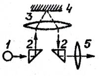 Рис. 6. Оптическая схема металлографического микроскопа; 1 - источник света; 2 - призма; 3 – объектив; 4 – микрошлиф; 5 - окуляр