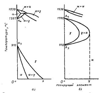 Рис. 23. Схемы влияния легирующих элементов на полиморфизм железа