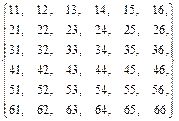 B = {11, 12, 13, 14, 15, 16, 21, 22, 23, 24, 25, 26, 31, 32, 33, 34, 35, 36, 41, 42, 43, 44, 45, 51, 52, 53, 54, 61, 62, 63}, (m = 30),