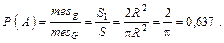Пример 13 В круг вписан квадрат. Наудачу в круг бросается точка. Какова вероятность того, что точка попадет в квадрат? Какова вероятность того, что точка не попадет в квадрат?