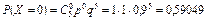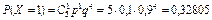 | pi | 0,59049 | 0,32805 | 0,0729 | 0,0081 | 0,00045 | 0,00001 | |
