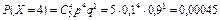 | 0,32805 | 0,1458 | 0,0243 | 0,0018 | 0,00005 | 0,5 | |