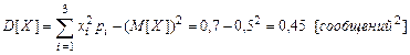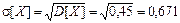 M [ X ] = n p = 5 × 0,1 = 0,5; D [ X ] = n p q = 5 × 0,1 × 0,9 = 0,45.