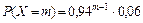 Пример 31 Вероятность изготовления нестандартного изделия при некотором технологическом процессе равна 0,06. Контролер берет из партии изделие и сразу проверяет его качество. Если оно оказывается нестандартным, то дальнейшие испытания прекращаются, а партия задерживается. Если же изделие оказывается стандартным, то контролер проверяет следующее изделие и т. д. Записать закон распределения случайной величины X – числа стандартных изделий, проверенных до выявления брака.