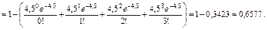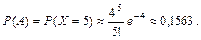 б) Для определения вероятности события B = {в течение трех часов поступит не менее четырех вызовов} введем в рассмотрение случайную величину X 2, определяющую число вызовов, поступивших в течение трех часов. Эта случайная величина распределена по закону Пуассона с параметром a = l t = 1,5 × 3 = 4,5:
