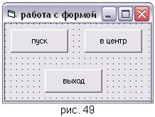 вым заголовком в правом верхнем углу и в центре экрана при нажатии на управляющую кнопку. Макет формы показан на рис. 49.