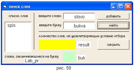 4. Оформить 4-ю форму по образцу (рис. 58). Задать ей свойство name – Poisk. Записать следующие программные коды для объектов формы: