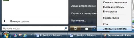 В любом случае, с помощью клавиш со стрелками надо выбрать кнопку «Завершение работы» и нажать клавишу Enter.
