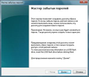 Создание диска сброса пароля предполагает следующую последовательность действий: