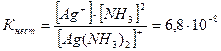 Комплексные ионы диссоциируют как слабые электролиты. Их диссоциация подчиняется закону действия масс и с количественной стороны характеризуется константой, которая носит название константы нестойкости комплекса. Так, комплексный ион [Ag(NH3)2]+