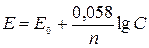 где Е – потенциал металла, помещенного в раствор своей соли,