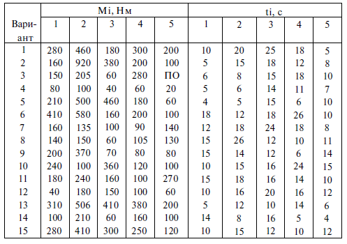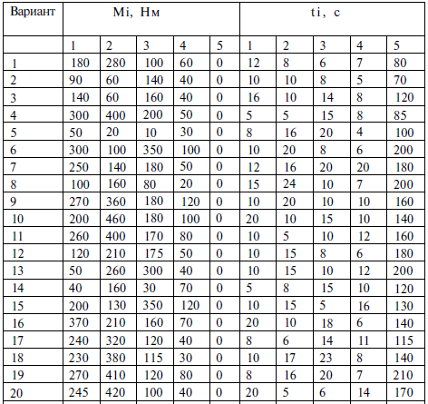 1) Для заданного группового варианта (табл. 4.1) и индивидуального варианта (табл. 4.2) начертить в масштабе нагрузочную диаграмму двигателя, рассчитать мощность, выбрать тип двигателя для режима с длительной переменно-периодической нагрузкой (табл. 4.3).