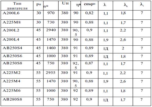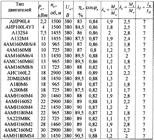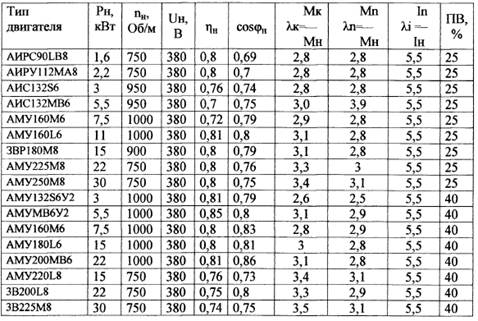 3) Выбранные двигатели проверить по перегрузочной способности и условиям пуска.