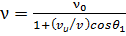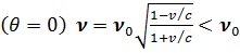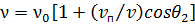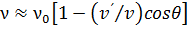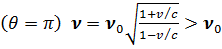 - угол между направлением на источник и вектором скорости. Если источник радиально удаляется от наблюдателя, то