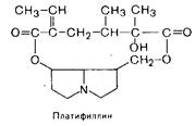 Алкалоиды крестовника. Входят в состав препаратов “Платифиллина гидротартрат” (Platyphyllini hydrotartras), “Платифиллина гидротартрат и папаверина гидрохлорида таблетки” (Tabulettae platyphyllini hydrotartras et papaverini hydrochloridum), “Спазмовералгин” (Spasmoveralginum) и др.