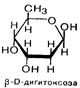 В составе сердечных гликозидов обнаружено до 30 различных сахаров, причем большинство из них, кроме глюкозы, фруктозы и рамнозы, сахара, специфичные для сердечных гликозидов, и в других биологически активных веществах растительного происхождения не встречаются. Это 6-дезокси- и 2,6-дезоксигексозы, которые, кроме того, часто содержат метоксильные или ацетильные группы (дигитоксоза, цимароза).